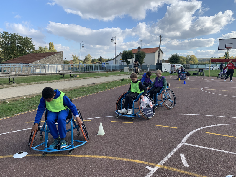 Ce vendredi 17 octobre, Aurore et Sébastien de la section Handfauteuil du club de Handball de Houdan sont venus à l’école pour proposer aux élèves une initiation au Handfauteuil. Ces derniers ont passé un superbe moment, beaucoup de rires et d’enthousiasme ont accompagné cette belle découverte.Les enfants ont pu apprendre à se déplacer en fauteuil, à se faire des passes, à tirer au but et à jouer ensemble malgré les contraintes du matériel. Ils ont rapidement compris que cette activité demande de la coordination, de la force dans les bras et surtout un vrai esprit d’équipe !Au-delà de l’aspect sportif, cette initiation leur a permis de développer leur sens de la coopération, de la solidarité et du respect des différences de façon ludique.